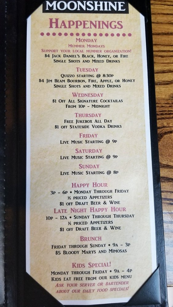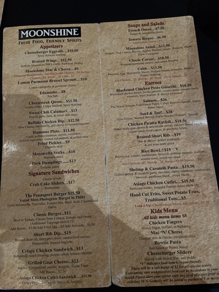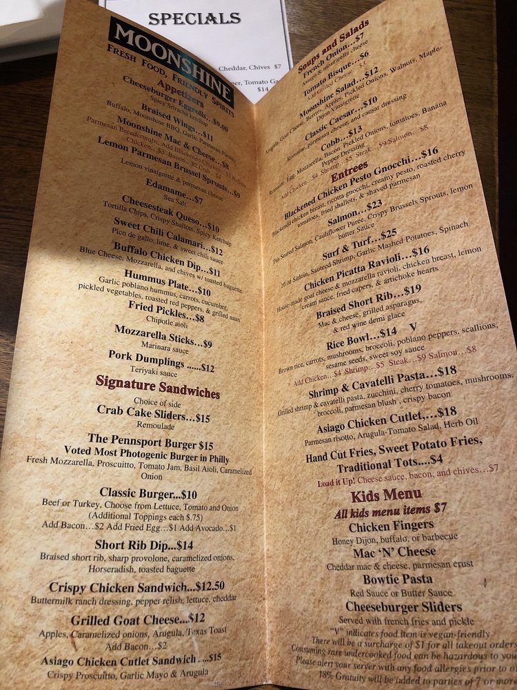 Moonshine Philly Menu (Update 2025)